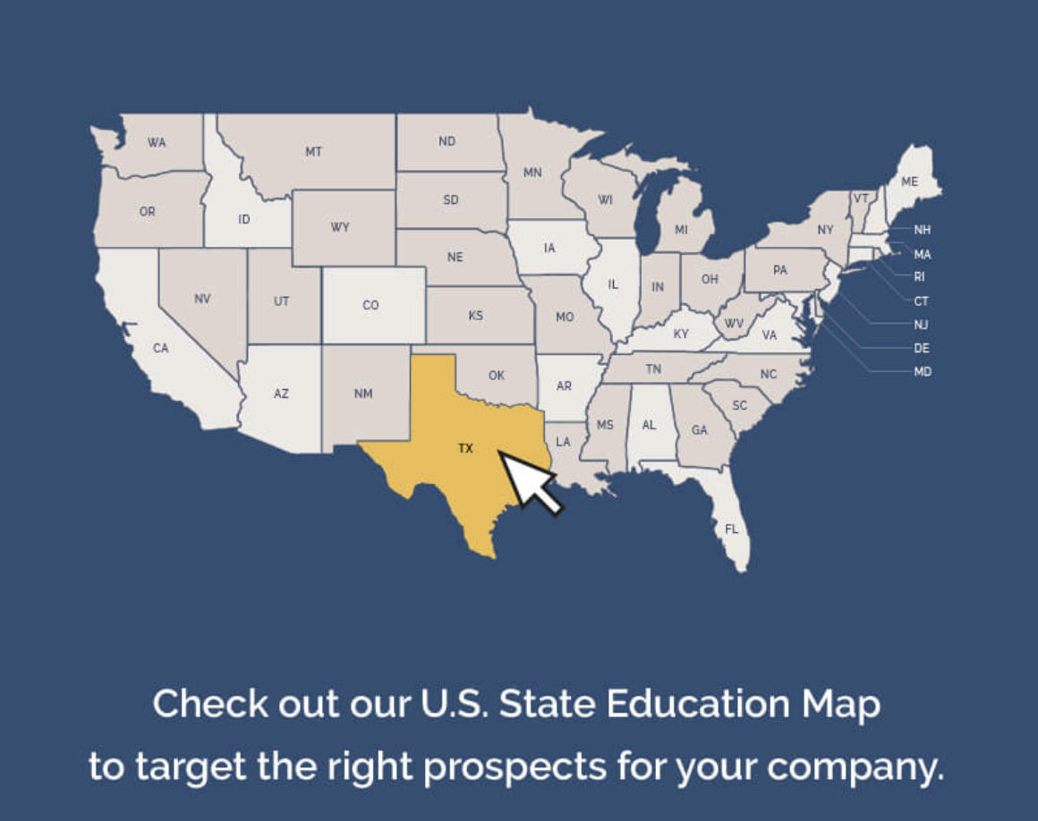 Phase 2 is making sure we’re demonstrating value to potential leads. One of the ways we’ve helped do this is with interactive design. We created an interactive map that lets users click on any state in the U.S. to see exactly how many districts, schools, types of schools and students it has.