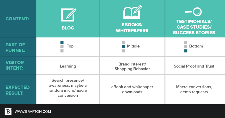 This is the full cycle of how content marketing works at each stage, and what to expect from each type of asset. Remember, always match your content expectations with the intent of the visitor consuming the content.