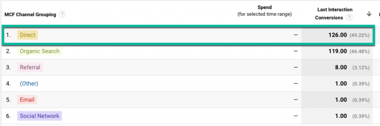 If this is accurate, we should see the last interaction before a conversion coming from direct traffic.