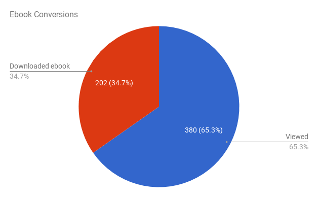 From August 1, 2016 to April 19, 2017 their conversion landing page received 582 unique pageviews, with 202 eBook downloads.