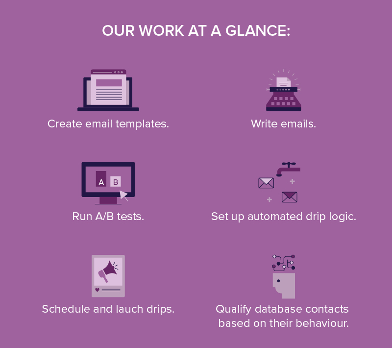 We created our campaigns with these considerations in mind, and we managed it using Mailchimp. We created the email templates, wrote all the copy, and scheduled and managed the sends.