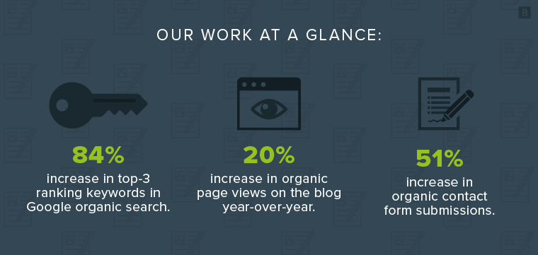 We knew that if we could improve rankings and drive more traffic to the site, we were halfway to improving lead generation.