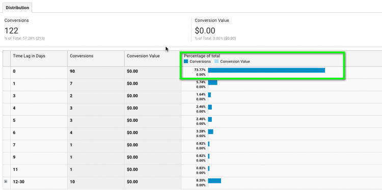 Going back to our story of the CTO with the heightened sense of urgency, the numbers prove our point. About 74 percent of all visitors who make a bottom-of-funnel conversion do so on the first day they interact with the website.