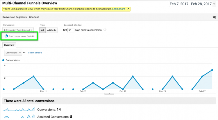 Over three weeks, the asset contributed 37 percent of site conversions (14 downloads). Going back to our “right content at the right time” model, the client generated 14 mid-funnel conversions (eBook downloads) and 18 bottom-of-funnel conversions (“contact us” or “request a trial”) during this time period.