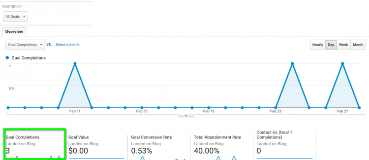Of those 14 downloads, three visitors arrived via the blog (tippy top of funnel):