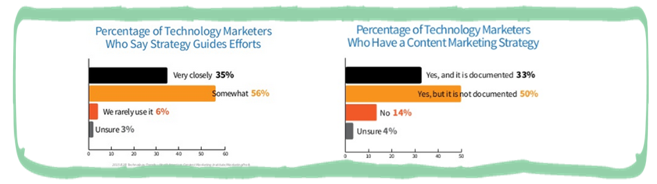 Tech marketers are largely aware of the need to educate prospects, which is why this industry is considered the most savvy in regards to content creation. Almost 90 percent of tech marketers have a content marketing strategy and say it guides their efforts.