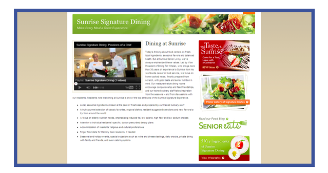 Sunrise and its Brafton team include data analysis in the strategy, and have already used content analytics to create new static pages and blogs. For example, the popular Senior Eats blog category inspired the company to move its seasonal menu online.