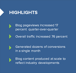“Our marketing and product development employees were originally contributing to the blog. They developed some great content, but they couldn’t produce enough content or consistently stay ahead of the right topics,” Magee said. “Discovering Brafton was amazing – I didn’t realize content houses like this existed.”