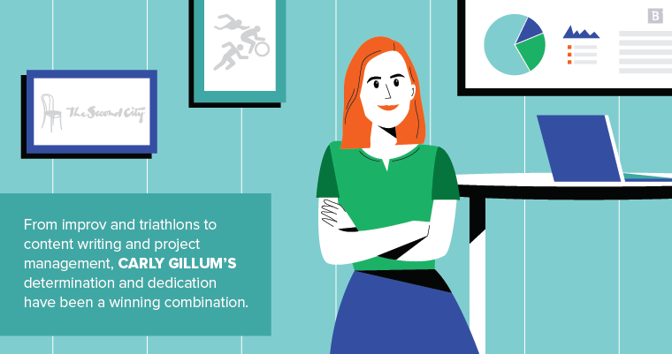 Entering the world of improv proved to be a pretty good career move for Carly. One of her classmates at Second City happened to be a writer at Brafton and was more than willing to give her a glowing reference. And so, on that fateful day in May 2015, Carly joined Brafton as a writer.