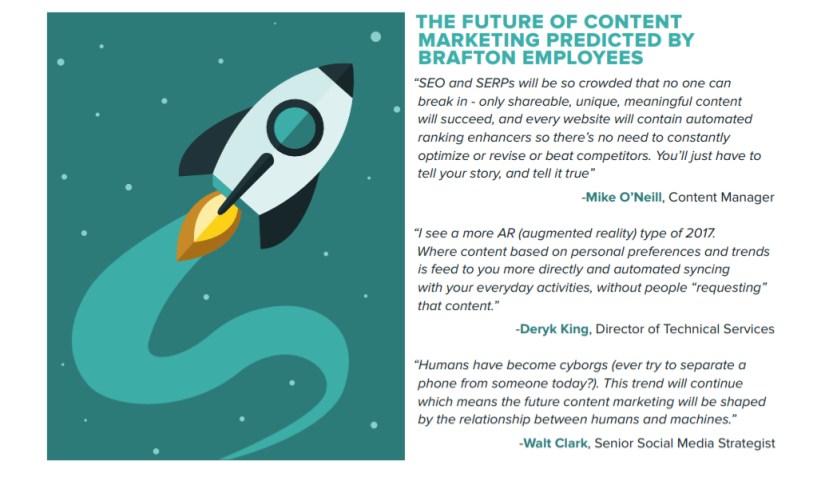 We’ve taken this approach a number of times. We asked our social followers their job titles and their opinions on the future of content marketing. We got hundreds of responses, so we anthologized this data, designed it and launched it.