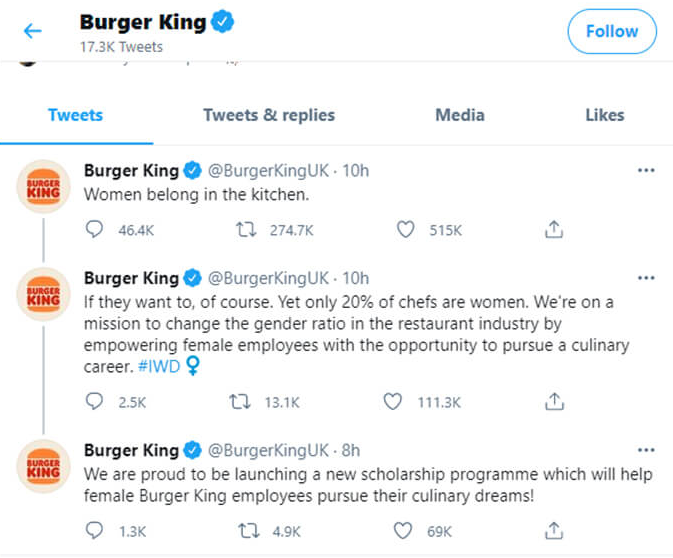 Burger King on International Women’s Day 2021