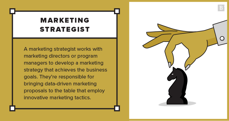 A marketing strategist works with marketing directors or program managers to develop a marketing strategy that achieves the business goals. They’re responsible for bringing data-driven marketing proposals to the table.