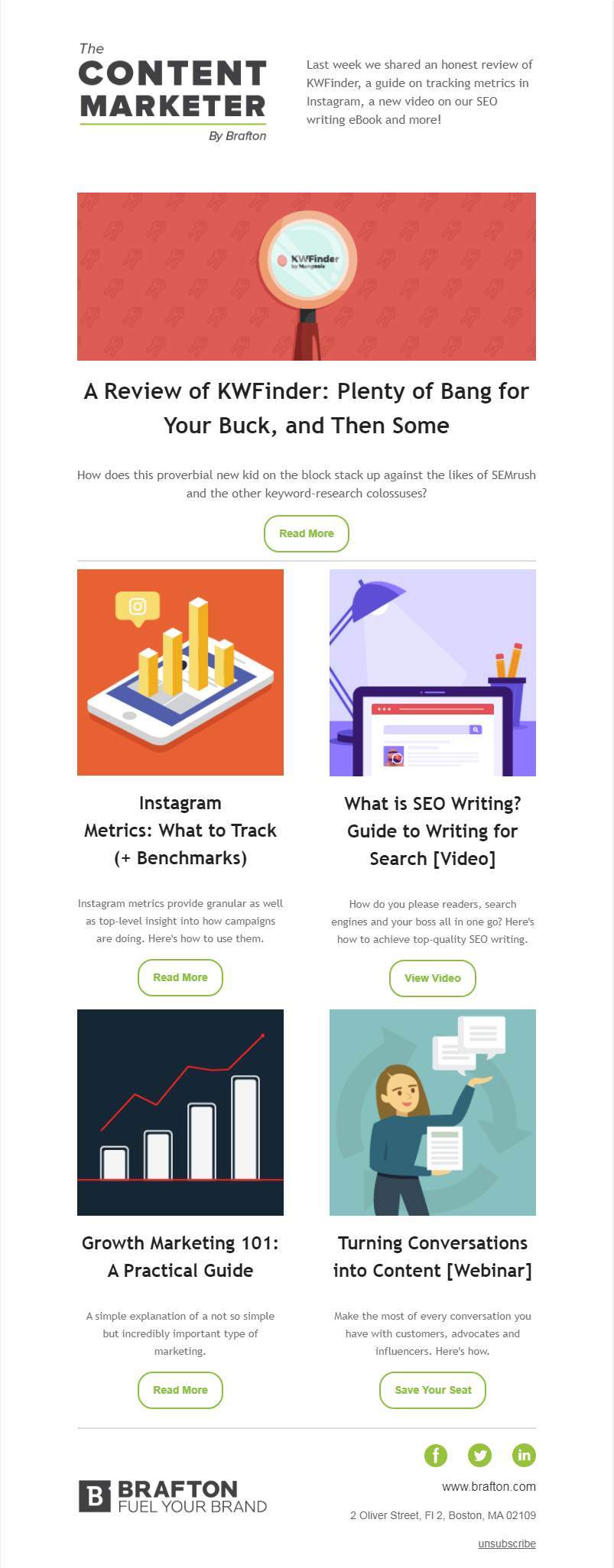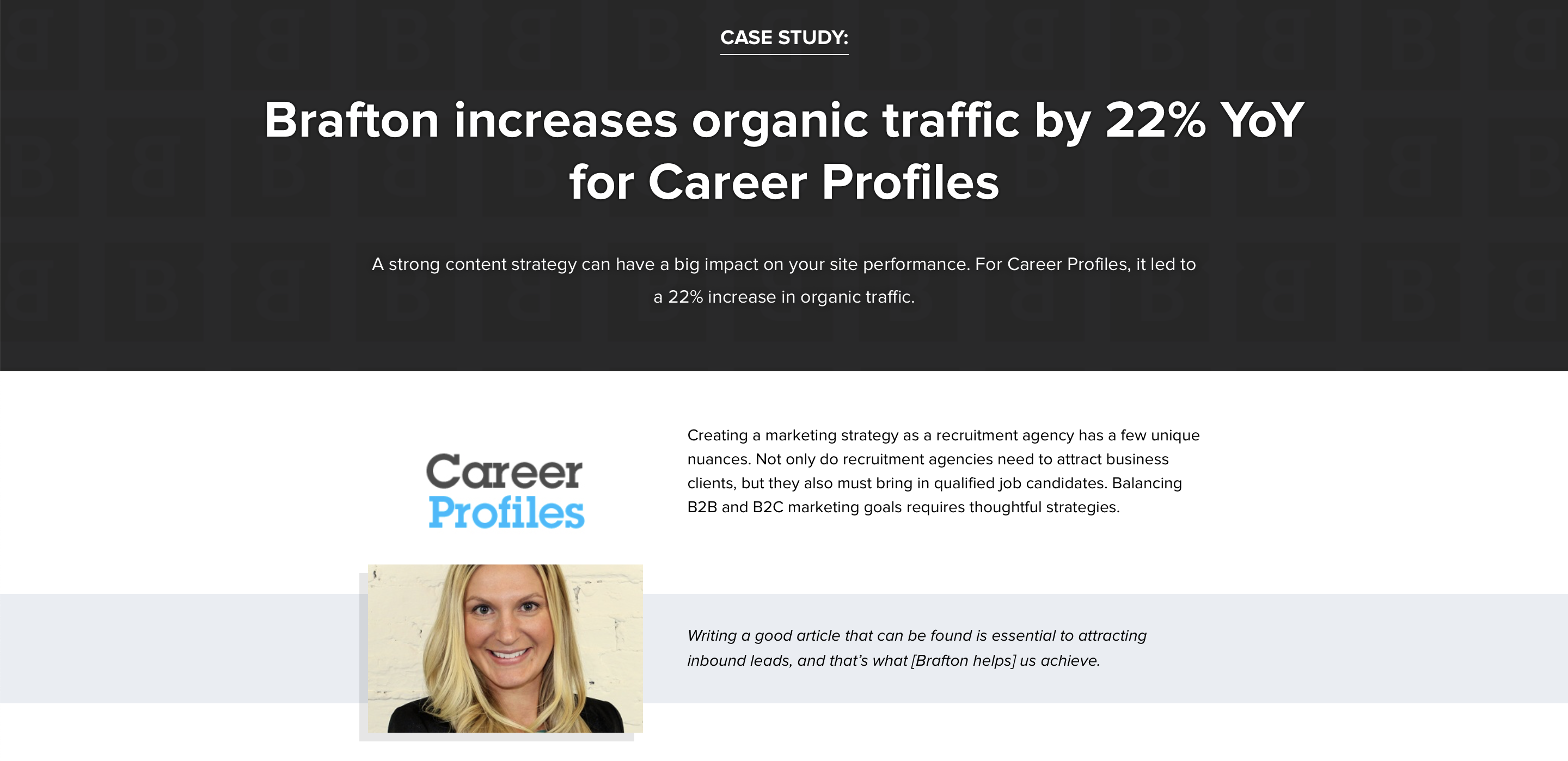For instance, at Brafton, our strategists anticipate what our target audience searches for by performing keyword research with tools like SEMrush. We map high-volume keywords to the top-performing content on the web, analyze that content and then create better content.