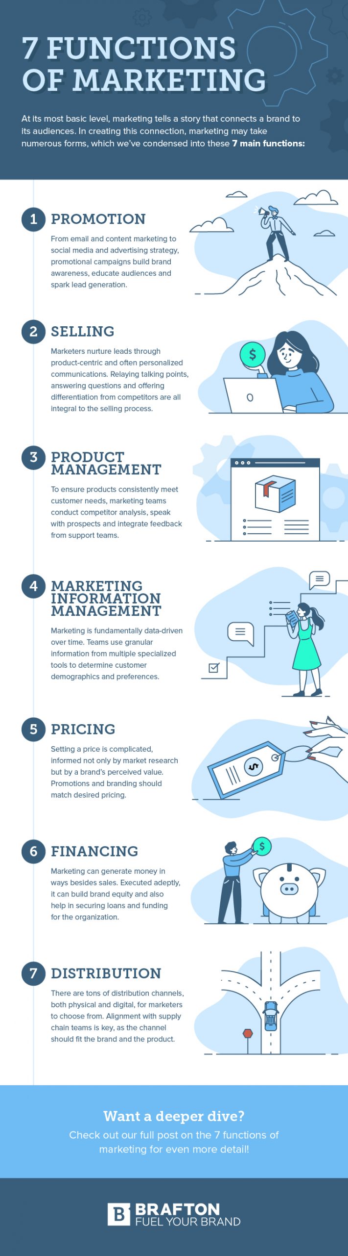 Without further ado, let’s dig into the 7 functions of marketing and take a look at how they align with overarching business objectives.