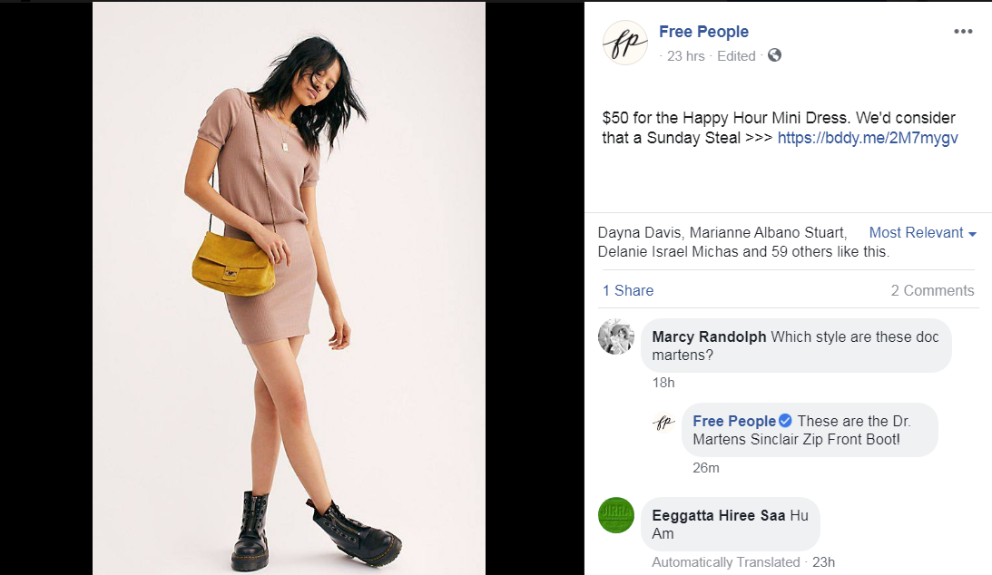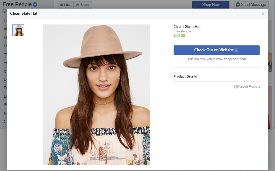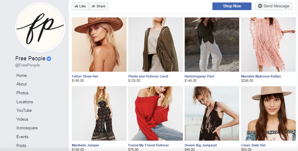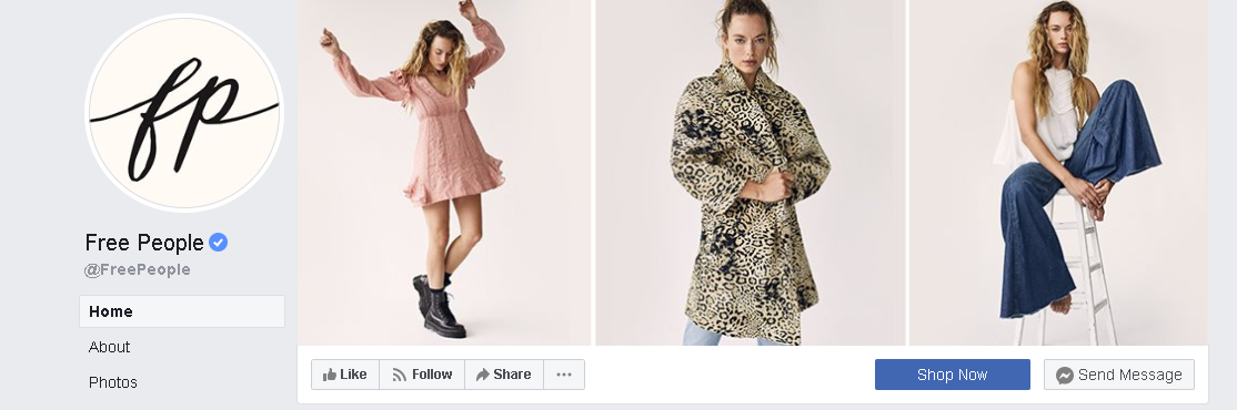 Clothing brand Free People provides a good example on its Facebook page. The brand provides a link (Shop Now) directly at the top which leads users to the company’s main e-commerce site: