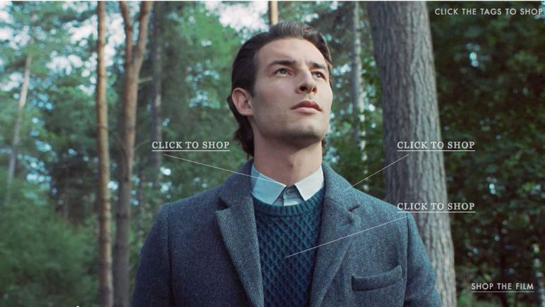 The above example comes from premium fashion brand Ted Baker, and is actually an interactive video that includes shoppable touch points directly within the video. Talk about advanced shopping!