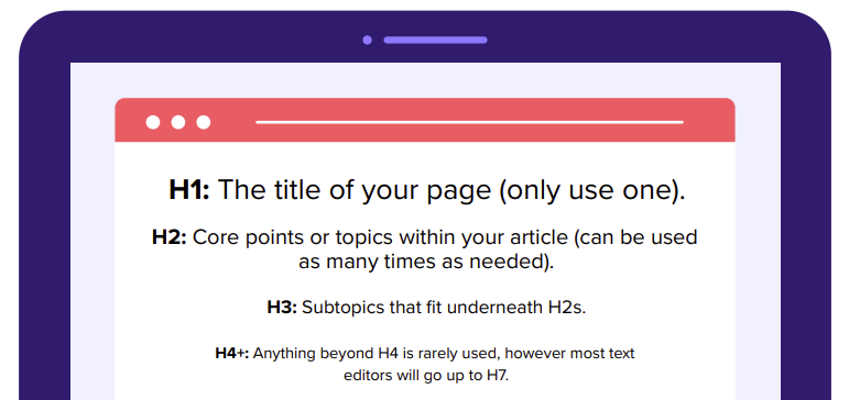 - H4+: Anything beyond H4 is rarely used, however most text editors will go up to H7.