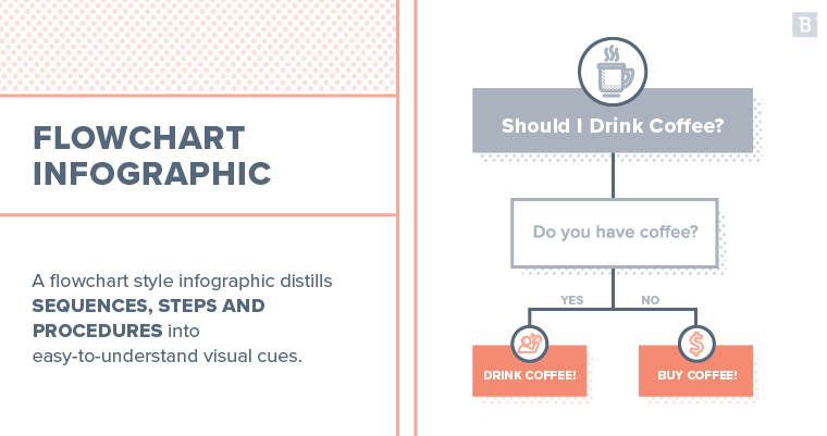 Infographics in this style do, in some respects, overlap with flowcharts, as they tend to feature lines or arrows that prompt users to navigate to the next intended step.