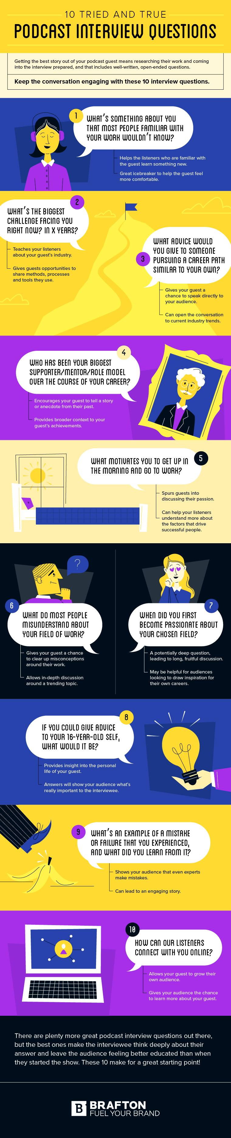 When it comes to podcasts, you want all participants to walk away feeling successful: yourself as the podcast host, your interviewee as the person in the spotlight and your listeners as those who benefited from your conversation. The truth is that this all comes down to your questions. Asking the right questions can mean the difference between an engaging conversation and a podcast episode that falls flat.