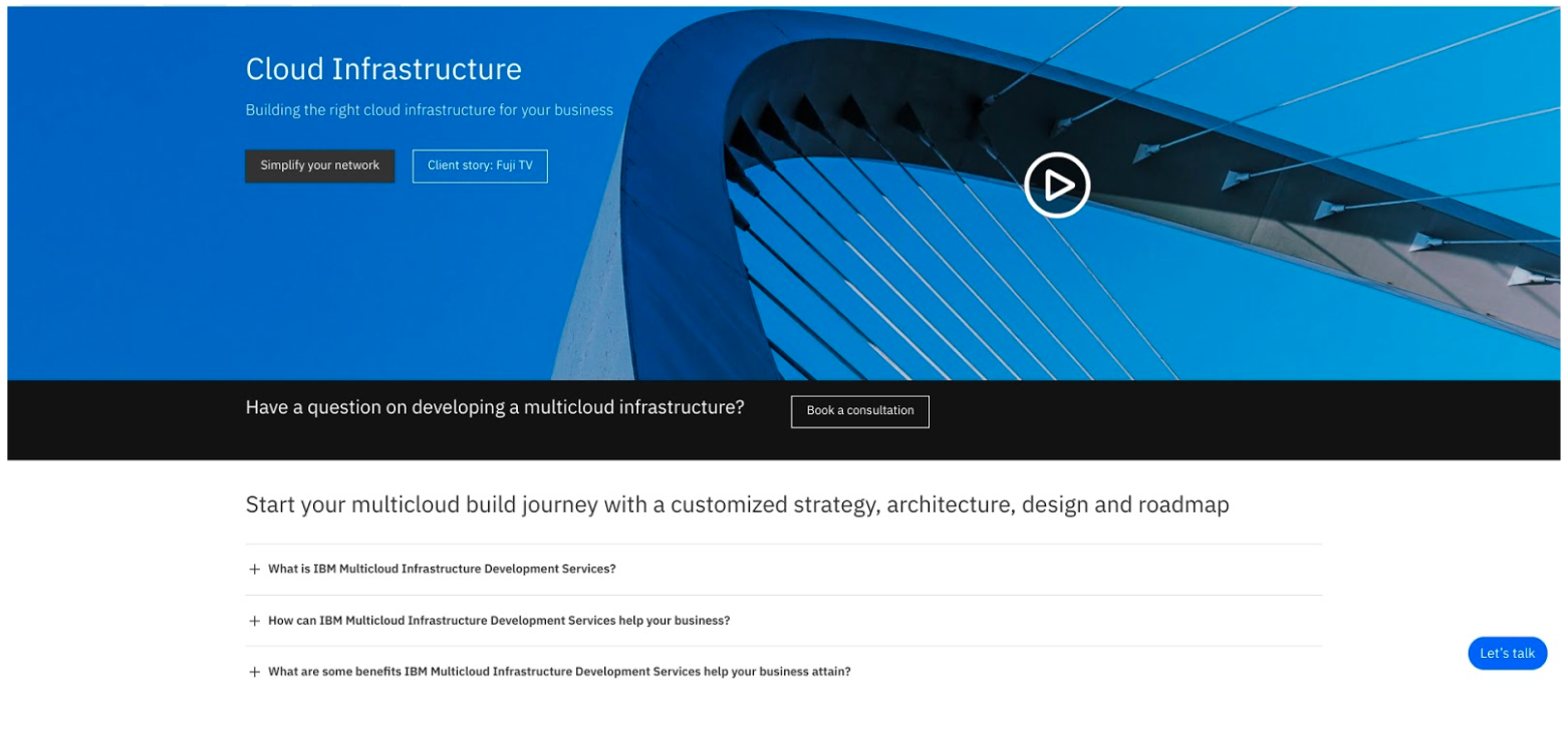 This is a sales page for IBM’s Cloud Infrastructure. Compare this sales page to that of the clothing brands Nuuly or SunChild above. Neither of these brands includes FAQ sections for their products because clothes are easy to understand. To demonstrate the importance of IBM’s new cloud services, the customer will likely need more information on how the service addresses their needs before they make a purchase.