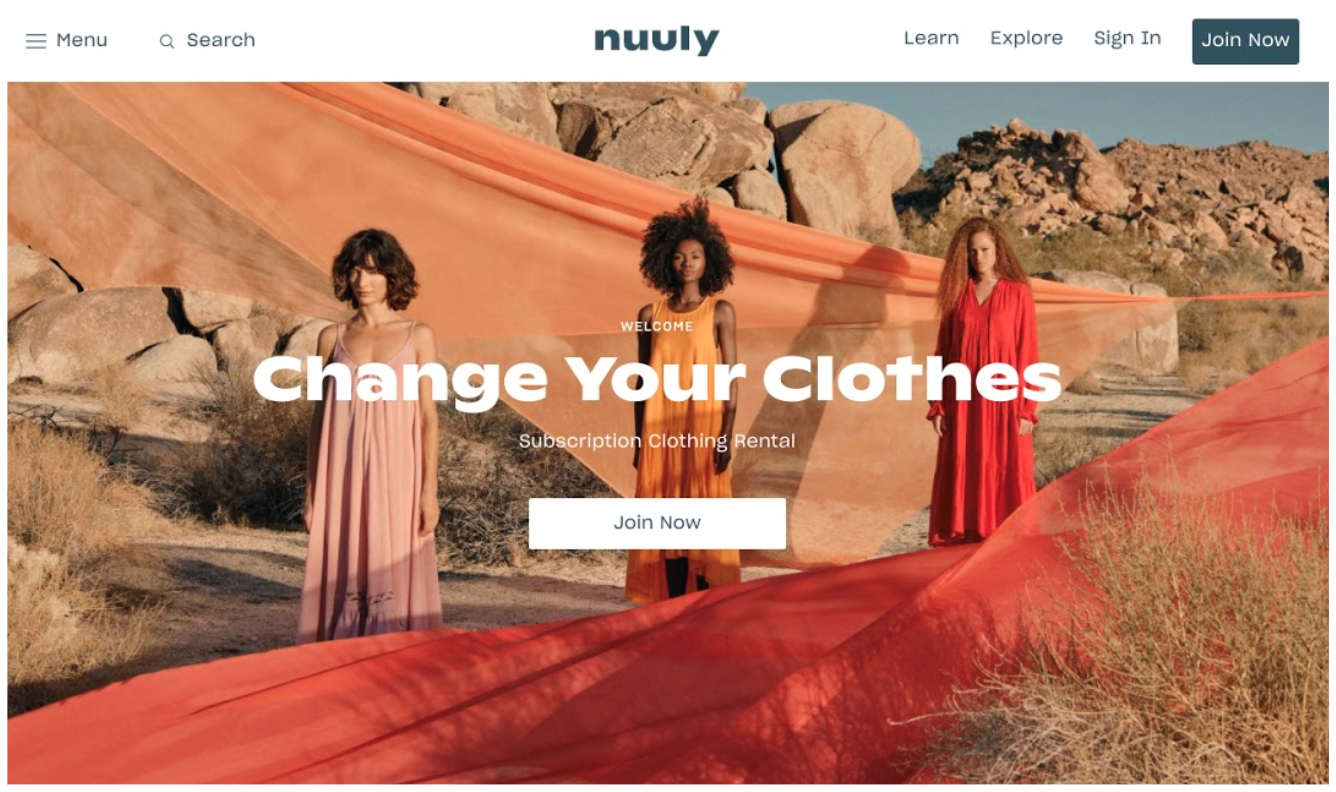 You’ll find here that Nuuly’s landing page has its logo, slogan and several CTAs that ask for an action. “Join Now” is the direct response button that will move the customer along in their sales process.