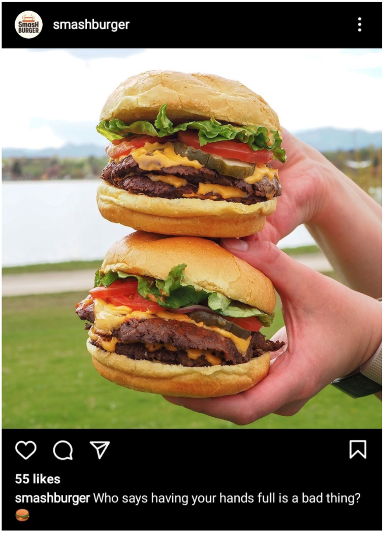 Smashburger is known to have funny, endearing social media posts because its audience is a younger generation of fast-casual diners who love great food. The restaurant’s posts almost always depict young families or people enjoying a Smashburger meal. The captions of these posts are light-hearted and include a relevant emoji.