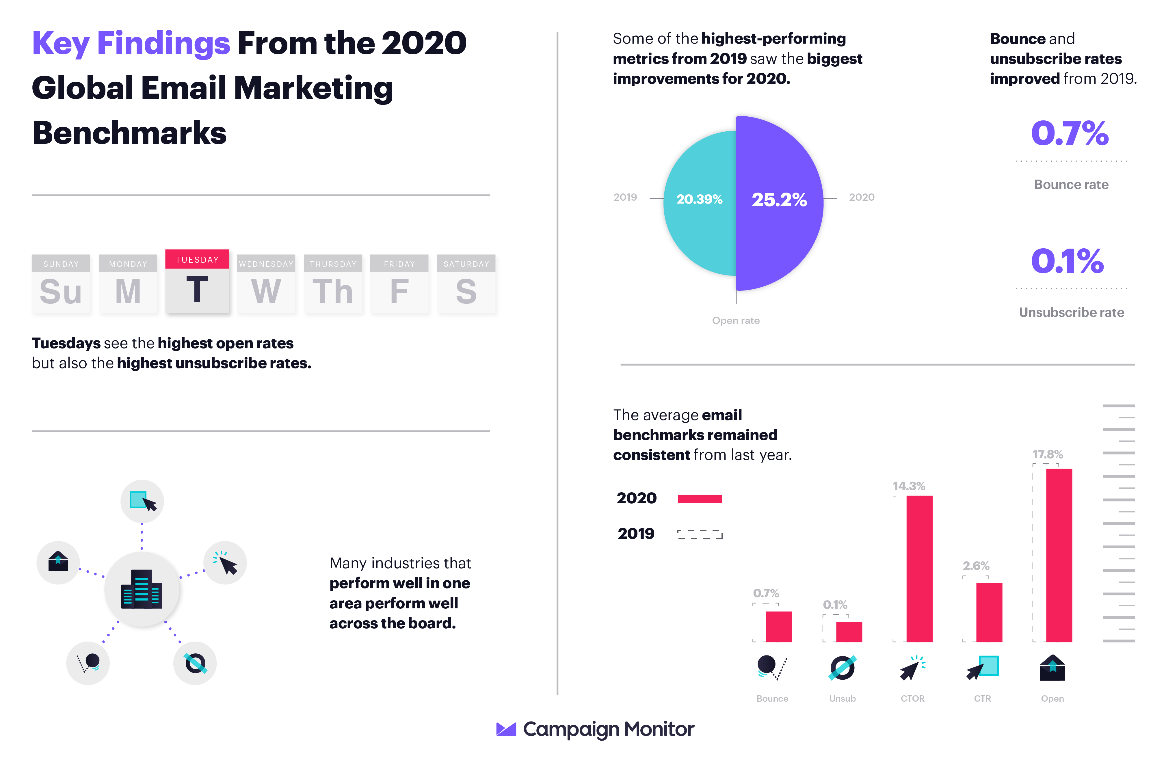 That said, no amount of baseline metrics can substitute for self-examination. Carefully monitor your own email engagement rates to find out what day of the week works best for your particular audience.