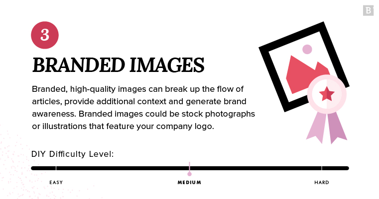 Branded images could be stock photographs or illustrations that feature your company logo. They can help lend a cohesive look and feel to your website. Keep your brand colors in mind when using images in your content.