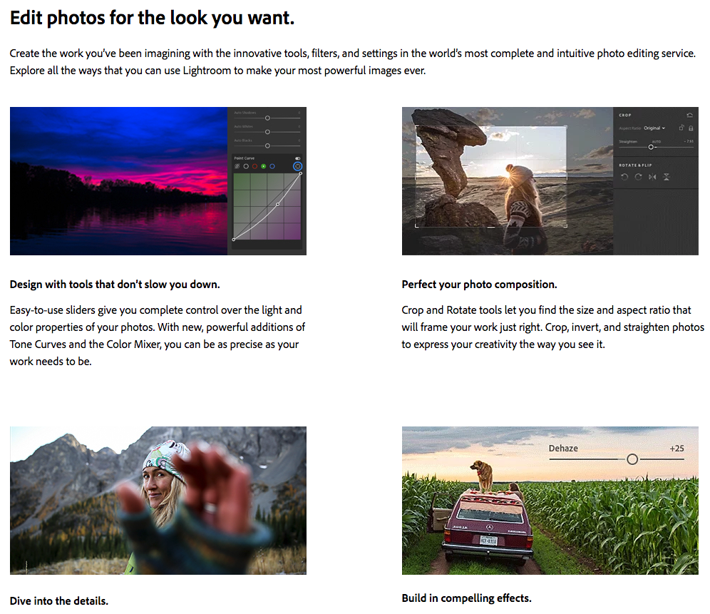 There are branding tools to help with everything from creating social media posts to refining your social media profile. In many cases, these solutions are geared toward specific social media platforms like Instagram, Facebook or Twitter. It’s tough to pick just one to highlight, but we’re giving that honor to Adobe’s Lightroom.