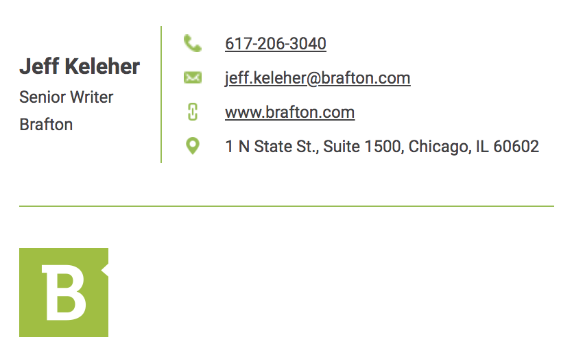 How can we possibly know all this? Because Brafton uses HubSpot’s tool to design email signatures for every one of our employees. Check it out: