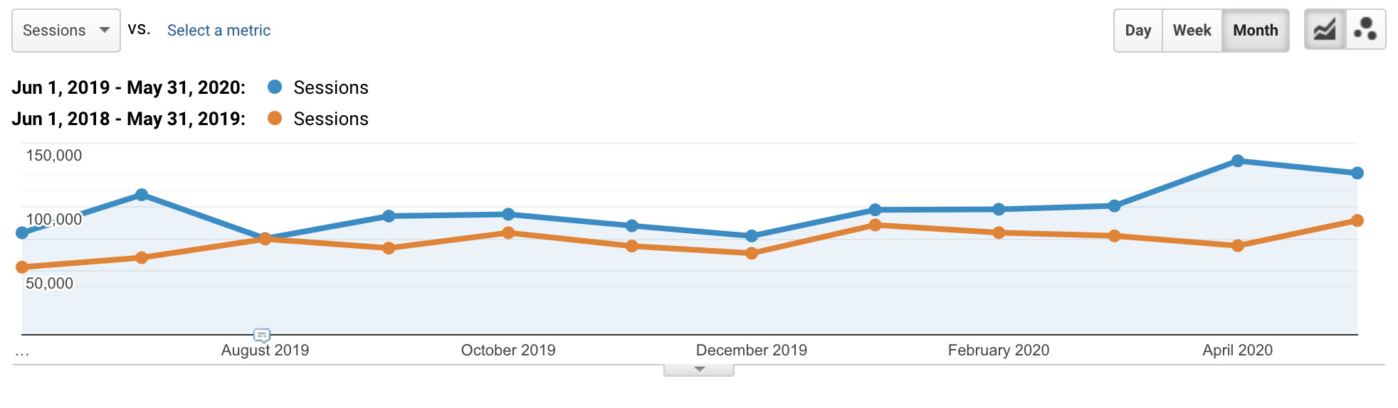 As a general rule, always keep an eye on year-over-year progress. This is important for understanding variables – for instance, recognizing that a traffic drop in Q4 is just the result of the holiday season. Google Analytics makes it relatively easy to conduct comparisons of YoY traffic, and see how specific SEO efforts and other variables affect traffic to your site.