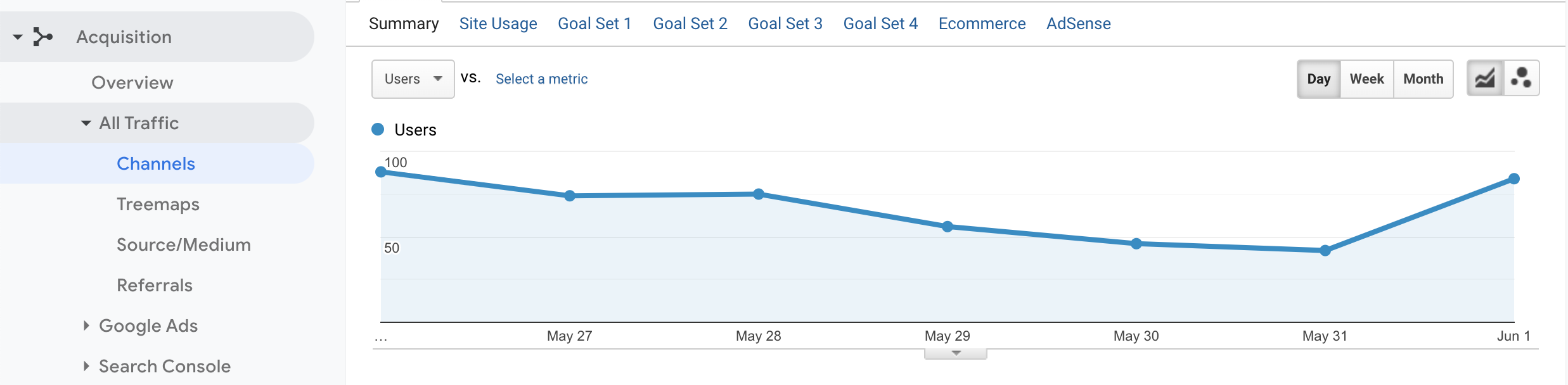 - Users: Users will tell you exactly how many unique individuals have come to your site.