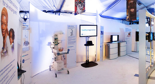 - The sets: GE staged movie-like reproductions of health care clinics, emergency rooms and other medical centers from urban and rural parts of the world. These visual aids immerse attendees into the subject matter and create a more memorable experience.