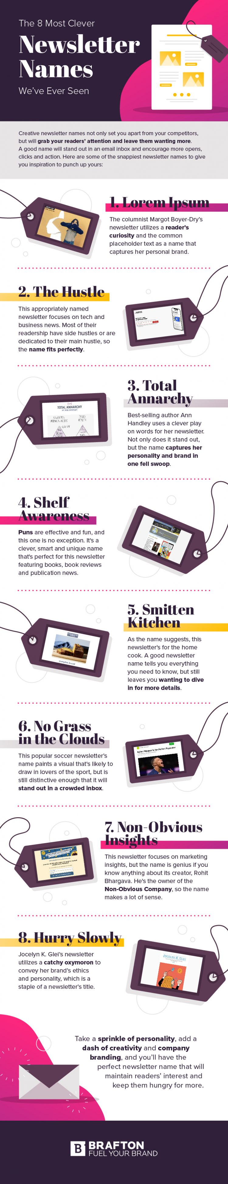 With that said, here are our favorite examples of creative and catchy newsletter names: