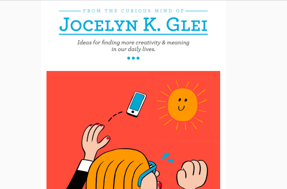 The oxymoron in this newsletter title is another example of conveying personality and ethics in one idea. Jocelyn K. Glei has spent countless hours interviewing designers, researchers and entrepreneurs about the secret to productivity, creativity and inspiration.