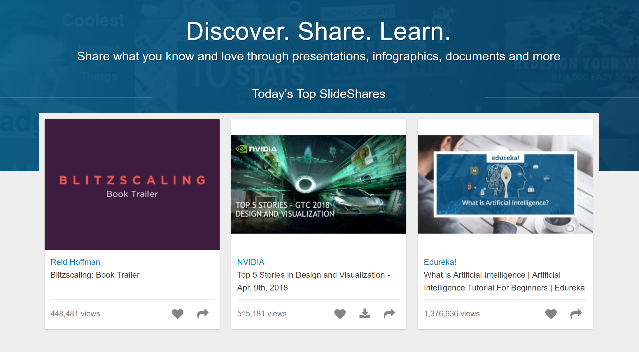 SlideShare is a platform designed to help thought leaders share their expertise with a wider audience. Purchased by LinkedIn in 2012, SlideShare is consistently within the top 100 most-visited sites in the world.
